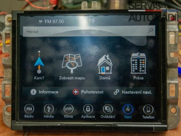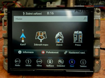 Dnes nám na stole leží navigace z Jeepu Grand Cherokee WK2. Stejně, jako mnoho dalších Jeepů trpí na odlepování displeje. Na obrazovce se po nějaké době začne objevovat bublina, nebo pruh, které se postupně rozšiřují. Tady pruh zabral téměř čtvrtinu displeje. Někdy při jízdě dochází i ke spouštění nevyžádaných funkcí - třeba neustálému přelaďování stanic rádia.